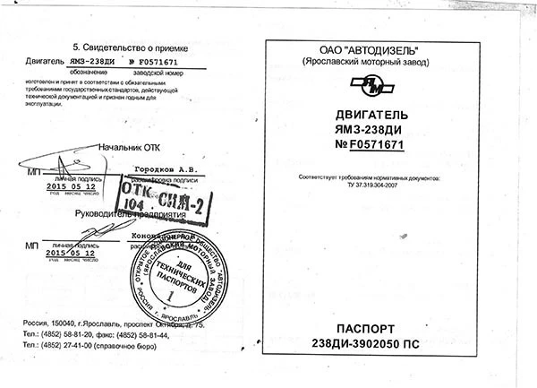 Проверить оригинальность двигателя можно на сайте Ярославского моторного завода: http://www.ymzmotor.ru/service/check-originality/ или позвонив в ОАО «Автодизель» по телефону +7 (4852) 58-78-78.