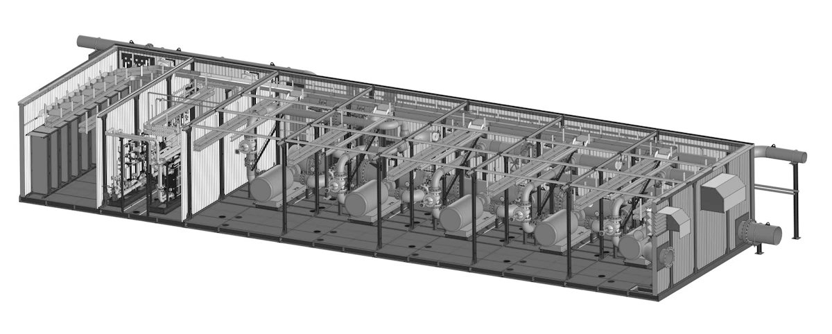 Блочное исполнение позволяет разместить полный комплект оборудования на площади от 6 м2. Станция не требует строительства фундамента капитального типа — достаточно выровненной бетонной площадки или металлической рамы. Автономность обеспечивается встроенными системами обогрева, вентиляции и автоматического управления.