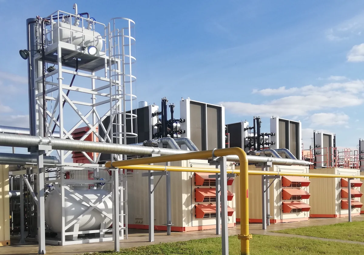 - Газопоршневая установка (ГПУ) — основной генерирующий агрегат, вырабатывающий электроэнергию и побочное тепло.