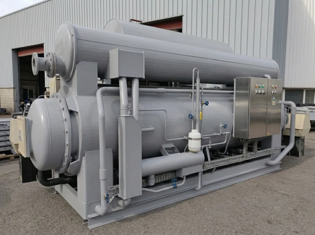 Установка использует тепловую энергию для испарения хладагента (воды) в условиях глубокого вакуума, а раствор бромистого лития выступает абсорбентом. В отличие от компрессионных чиллеров, АБХМ практически не потребляет электроэнергию, работает бесшумно и не использует фреоны.