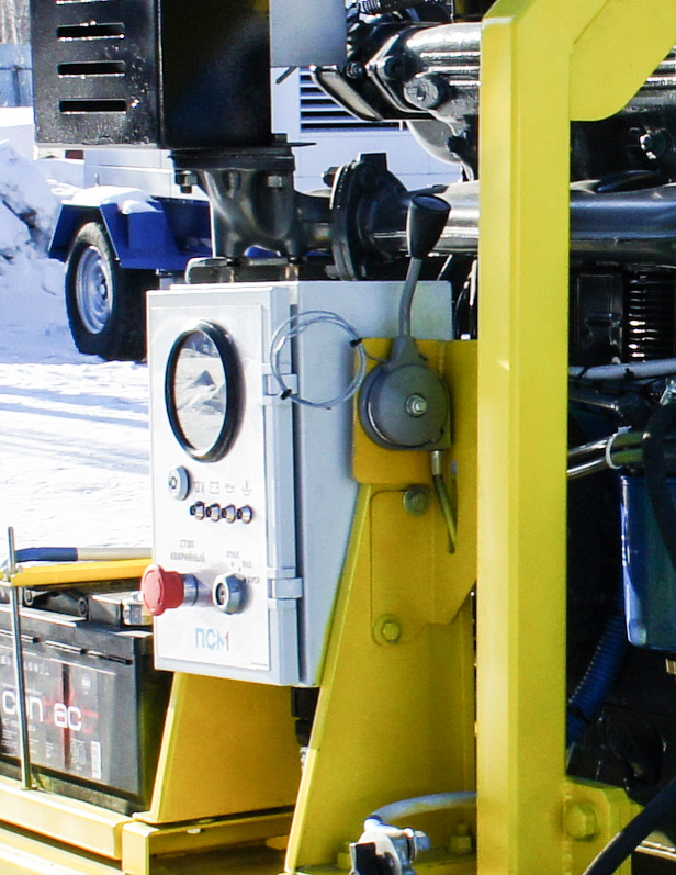 Запуск, останов и аварийный стоп ДНУ осуществляется с пульта с аналоговыми приборами, кнопками и индикаторами.