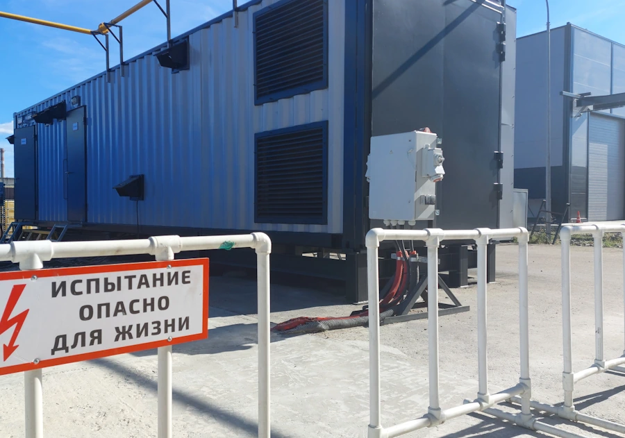 Комплекс оборудован нагрузочным модулем мощностью 2000 кВт с возможностью подключения дополнительных устройств и увеличения мощности испытуемой станции до 3000 кВт. В составе модуля высоковольтное распределительное устройство для выбора класса напряжения: 400, 6300 или 10500 В.