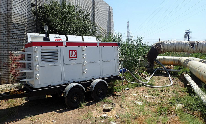 В основе установки для «ЛУКОЙЛ-Астраханьэнерго» двигатель ММЗ и итальянский насос SAER. Оборудование установлено на двухосный прицеп. От осадков узлы и системы спасает погодозащитный капот. В комплекте - два 8-метровых металлических рукава для подключения к магистрали.