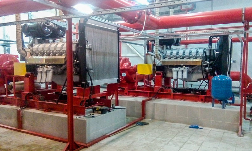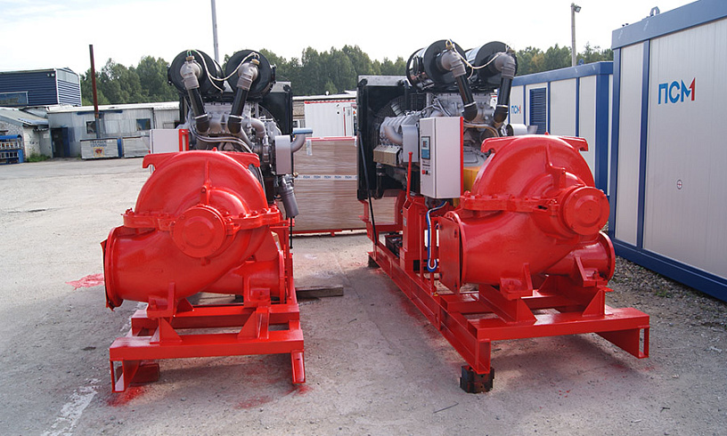 Насосные агрегаты ПСМ ДНУ-1150/100 вошли в состав системы пожаротушения комплекса PNK Парк - Валищево. Складское помещение класса А имеет спринклерную систему пожаротушения, соответствующую международным стандартам FM Global. Вода мгновенно подается из распылителей на очаг возгорания.