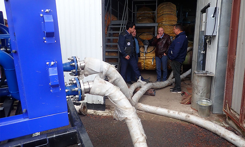 Особенностью установки стали дополнительные задвижки на входящих магистралях. Это позволило менять направление потоков (напорный и обратный) без переподключения рукавов.