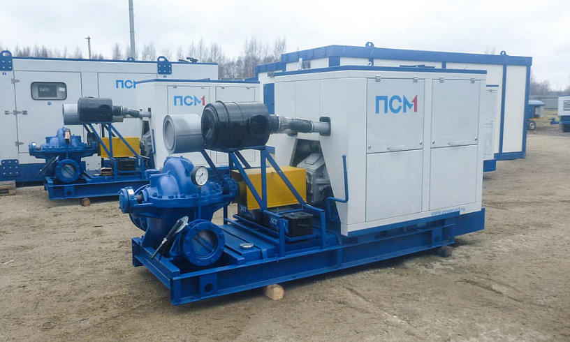 В основе установок - центробежный насос типа Д и двигатель ЯМЗ. Чтобы оборудование не повредилось из-за осадков, двигатель поместили в погодозащитный капот.