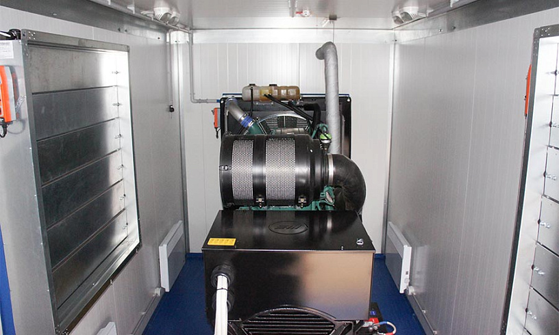 Часть агрегатов установлены в контейнеры, разработанные специально для монтажа электростанций. В таком исполнении технике не страшен ни дождь, ни снег, ни мороз. Внутри контейнера постоянно поддерживается идеальный рабочий климат, поэтому оборудование исправно выполняет свои обязанности даже при самых неблагоприятных внешних условиях.