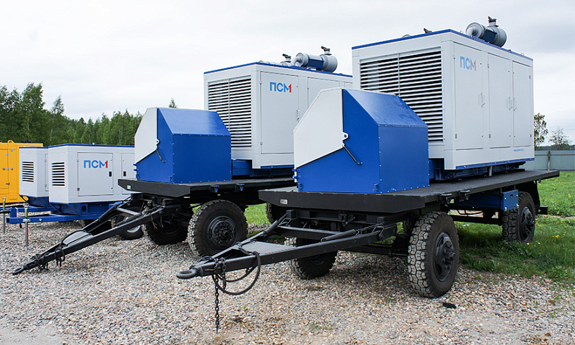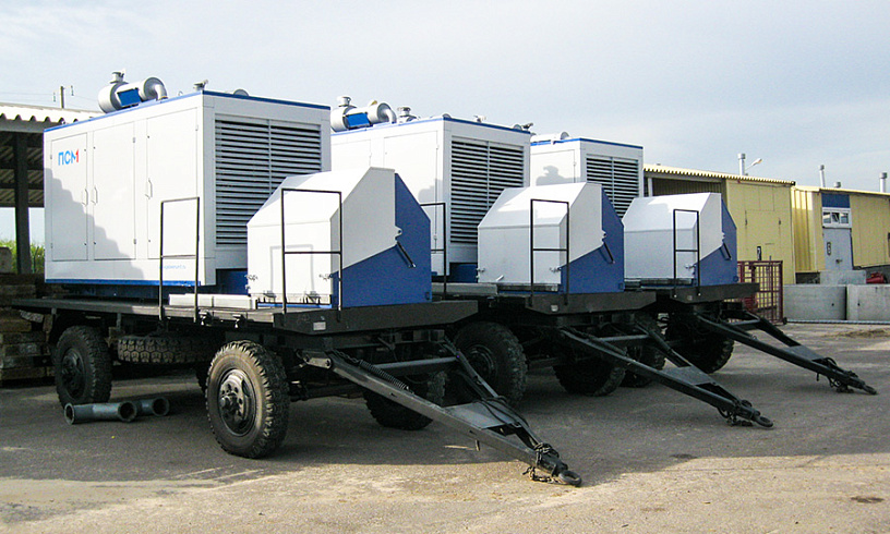 Все агрегаты поставлены на прицеп. Так их удобно перемещать по большой территории комплекса от одного строения к другому. По просьбе заказчика в комплектацию установки вошла катушка для перевозки кабеля вместе с установкой. А чтобы транспортировать катушку с кабелем было еще удобнее, инженеры ПСМ спроектировали для нее специальный шкаф-бокс.