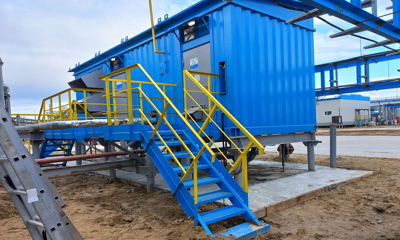 Все оборудование смонтировано в контейнеры производства ПСМ. В каждом модуле предусмотрено два отсека: агрегатный и операторский. В агрегатном находится станция и система дозаправки, во операторском – электротехническое оборудование.