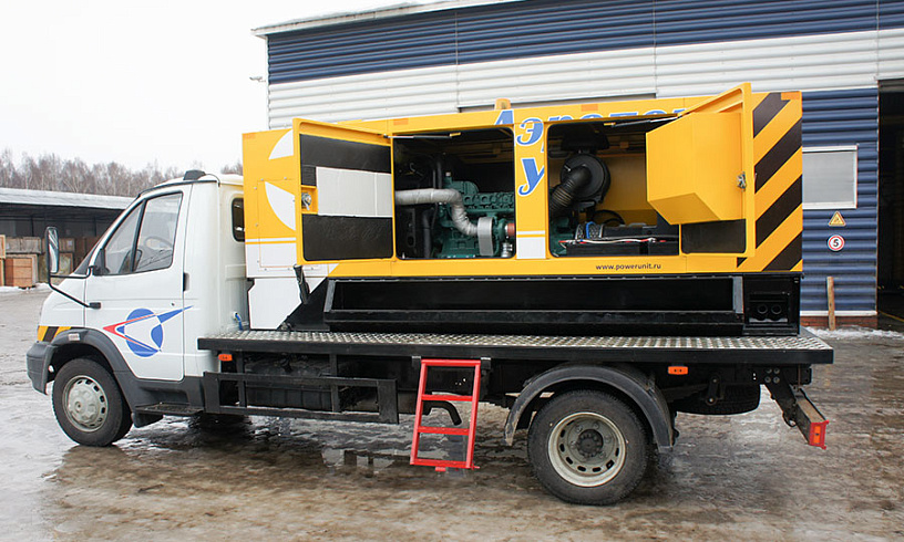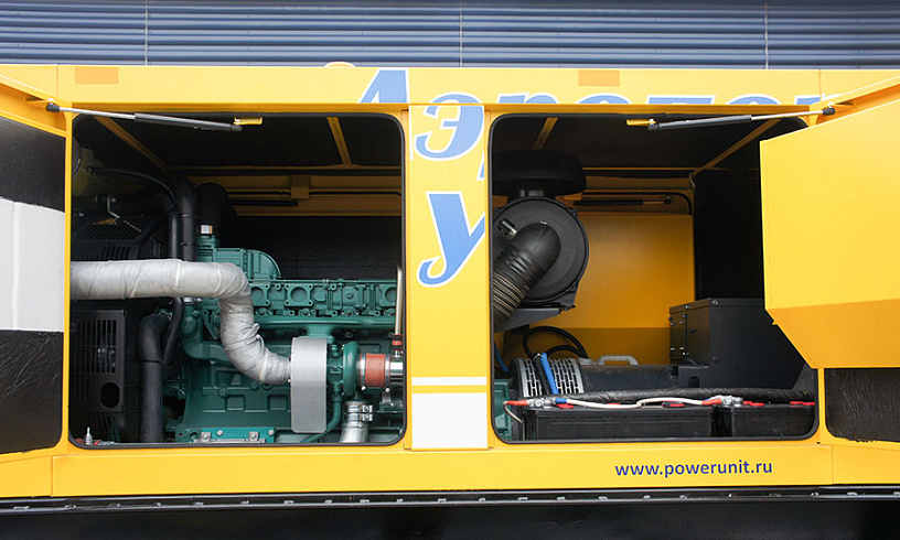 Электростанции установлены в кожухи для защиты от погодных воздействий. Они же избавляют и без того шумные аэродромы от дополнительного звукового давления. Благодаря исполнению на прицепе и на самоходном автомобильном шасси агрегаты легко перемещать по всей площади летного поля.