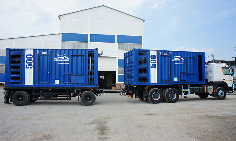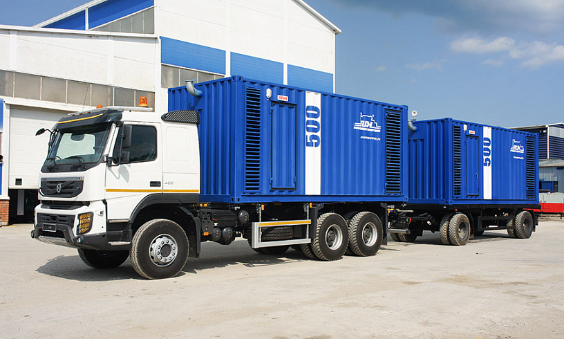 Электростанции собраны на базе шведских двигателей Volvo Penta, помещены в контейнеры и установлены на грузовой автомобиль Volvo с прицепом.