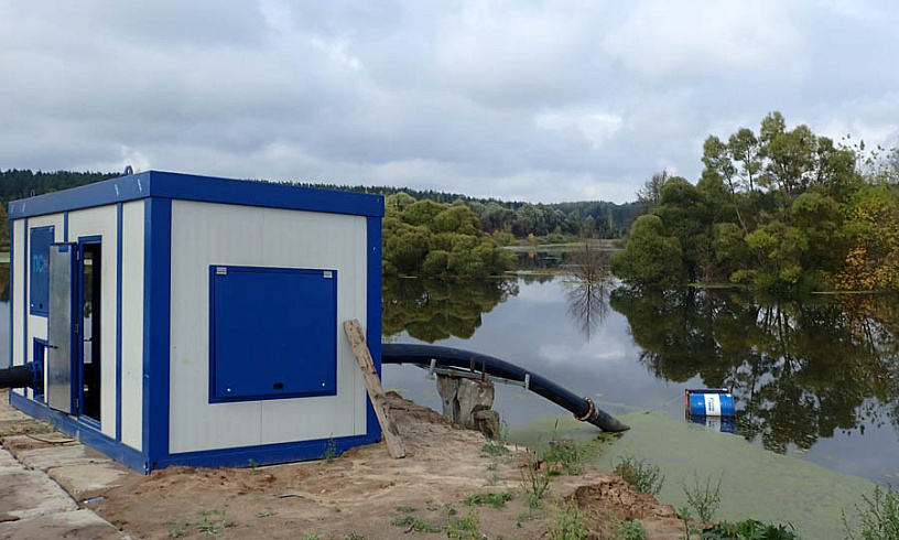 ДНУ размещена на берегу естественного водоема. Для защиты оборудования от посторонних лиц и животных, его поместили в контейнер. Металлическая оболочка станет препятствием и для неблагоприятных природных явлений: дождя, ветра, града.