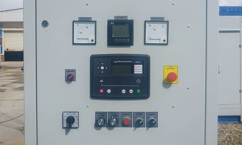 Электростанция работает в параллели с тремя станциями заказчика. Поэтому система управления агрегатом ПСМ выполнена на базе контроллера Deep Sea, необходимого для полной синхронизации с уже работающим энергокомплексом.