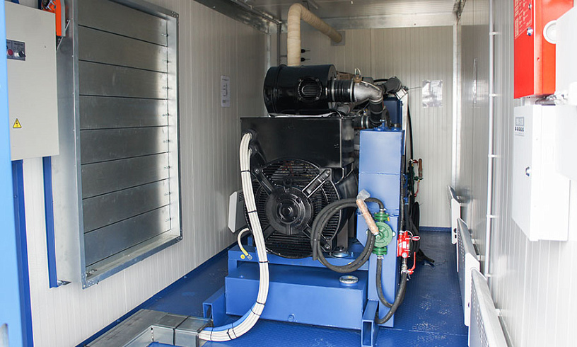 Станция АД-250 смонтирована в контейнер «Север», система управления на базе контроллера Deif мониторит состояние основной сети, дизель-генератор запускается автоматически при аварии в основной сети.
