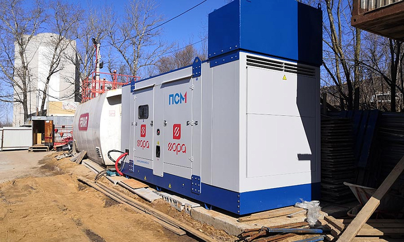 Электростанция решает несколько задач. Во-первых, позволяет увеличить мощности на период строительства. Выделенных ресурсов от снабжающей организации оказалось недостаточно для работы в холодное время года, когда необходимо подогревать бетон. Второе применение ДГУ — резервировать внутренние домовые системы после ввода дома в эксплуатацию.