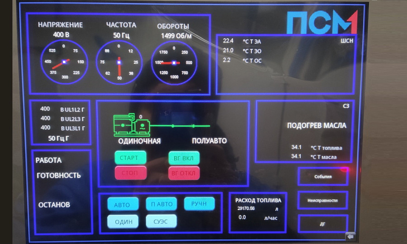 Оборудование смонтировано в 10-метровый цельнометаллический контейнер. Внутри два отсека: моторный и операторский. В моторном помимо оборудования расположен топливный бак с системой обогрева и системой автоматической дозаправки. В операторском - ВРУ, шкафы собственных нужд, пульт управления – все изготовлено на производствах ПСМ.