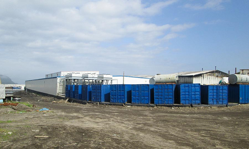 Энергокомплекс мощностью 1 МВт резервирует цех сортировки и заморозки рыбы Северо-Курильской базы сейнерного флота. Шквальные ветры тихоокеанского побережья обрывают провода и часто оставляют завод без электричества. Электростанции ПСМ должны обеспечить стабильную подачу электроэнергии в цех и сохранить морепродукты свежими.