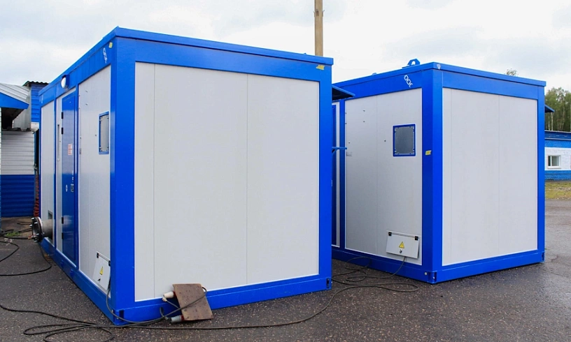 В составе блочной насосной станции (БНС): блок-модуль, электрический насосный агрегат, трубная обвязка с запорно-регулирующей арматурой и системы автоматизации. Для горно-обогатительного комбината в Оренбургской области мы поставили шесть компактных БНС. Блок-контейнеры «Север» установили на полозья для оперативного перемещения по территории ГОКа.
