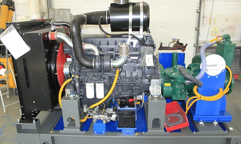 Насосная установка выполнена на базе насоса Pioneer Pump (США) и дизельного двигателя FPT (Iveco Motors, Италия). Производительность установки — 1270 м3/ч. Напор — 80 м. Станция оснащена системой ручного управления и защищена капотом, окрашенным в корпоративные цвета заказчика.