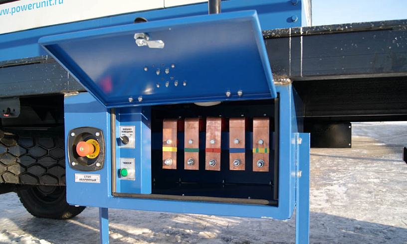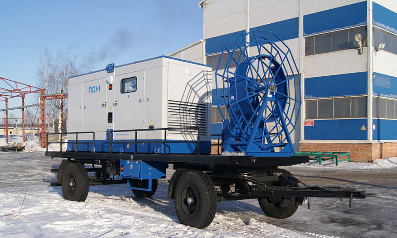 ДГУ поставлена на прицеп и укомплектована катушкой с электроприводом для оперативного подключения станции. Основные функции агрегата вынесены на отдельную панель, поэтому для управления системами дизель-генератора не нужно открывать кожух. Кожух, шасси и катушка с кабелем – это оптимальный вариант исполнения для электроустановки, отвечающей за резерв сразу нескольких объектов.