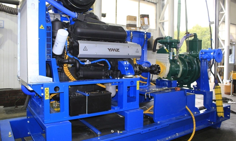 Насосный агрегат закрыт погодозащитным капотом производства ПСМ.