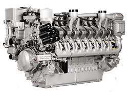 Дизельный двигатель MTU 20V4000G24(F) производства MTU Friedrichshafen GmbH (Германия) - 20-цилиндровый, V-образный, 4-тактный, с системой впрыска топлива "Common-Rail" (электронное управление впрыском).